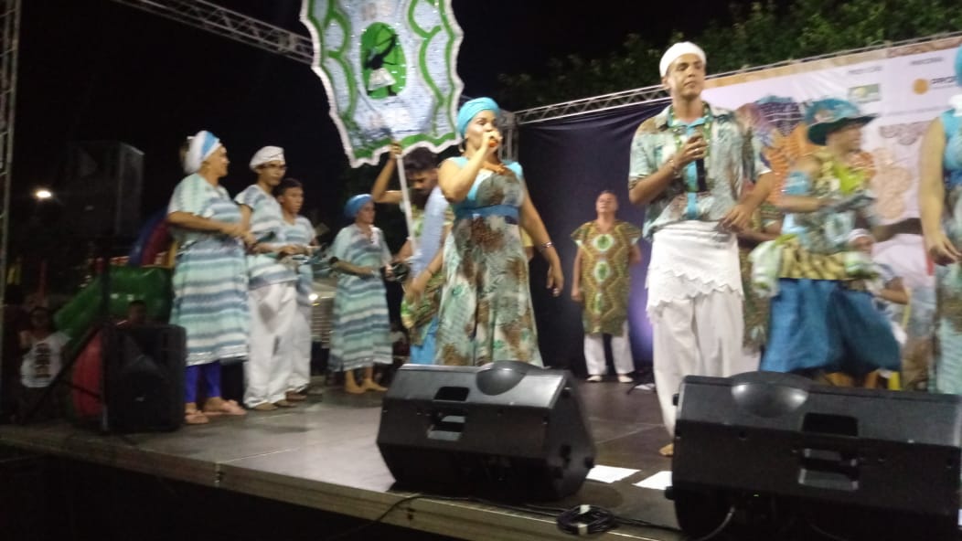 o projeto sócio-cultural da entidade. As cores são azul, verde, branco e dourado e prateado, seu repertório é de autoria própria e fala sobre resistência, religião e beleza da raça negra.